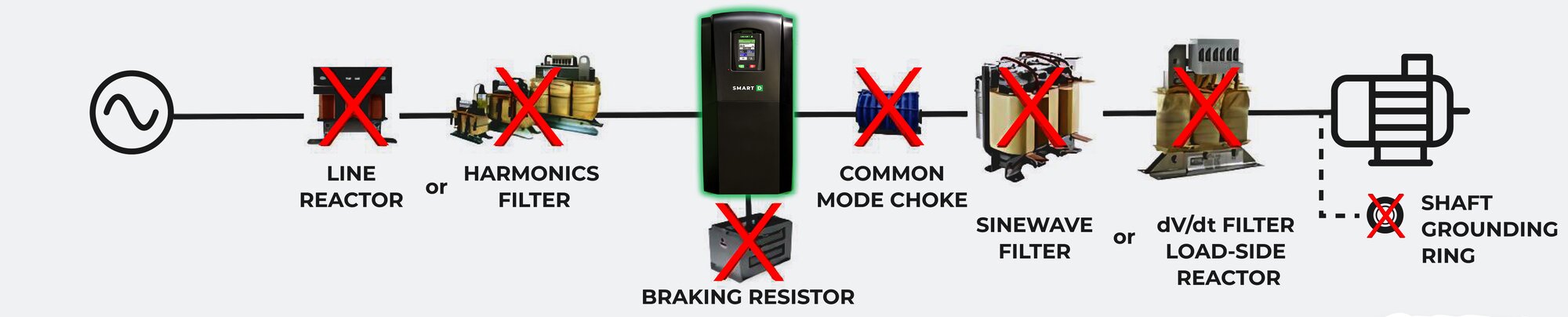 Ideal for replacing existing VFDs where harmonics, electrical noise, or added filtering have introduced complexity or ongoing issues.